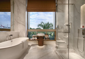 采用底盆的淋浴房看起來會顯得比較高檔大氣,同時擁有不俗的水密性。但是有一點值得注意:在安裝之前一定要事先布局并且預留好孔位,以免安裝出錯。