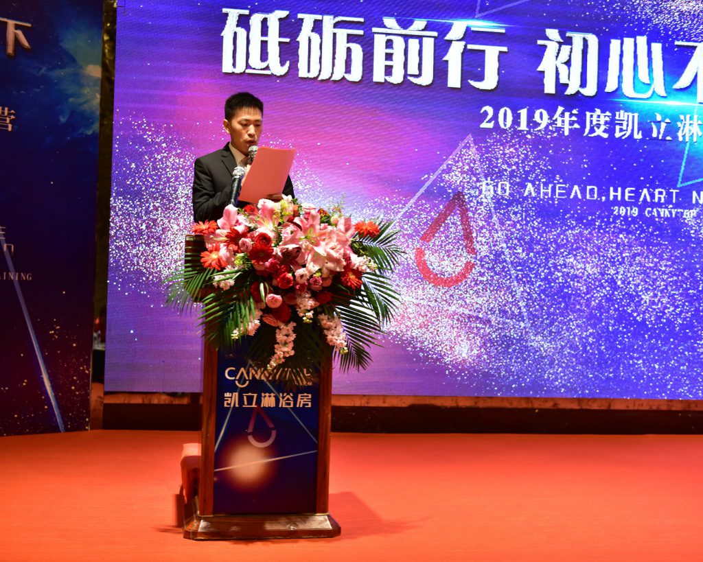 隨后,中山凱立潔具有限公司董事總經(jīng)理、凱立淋浴房(中國)商學(xué)院院長(zhǎng)徐振幼先生發(fā)表了講話,徐總簡(jiǎn)要回顧了凱立企業(yè)發(fā)展不平凡的2018年,展望了充滿自信和信心的2019年,正是得益于企業(yè)擁有了明確的戰(zhàn)略方向的指引和戰(zhàn)略定力的堅(jiān)持,才將凱立核心競(jìng)爭(zhēng)力不斷的展現(xiàn)于市場(chǎng)之上,不斷推進(jìn)了品牌的發(fā)展和產(chǎn)品的調(diào)整。相信凱立企業(yè)的明天會(huì)更好。