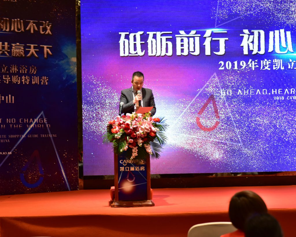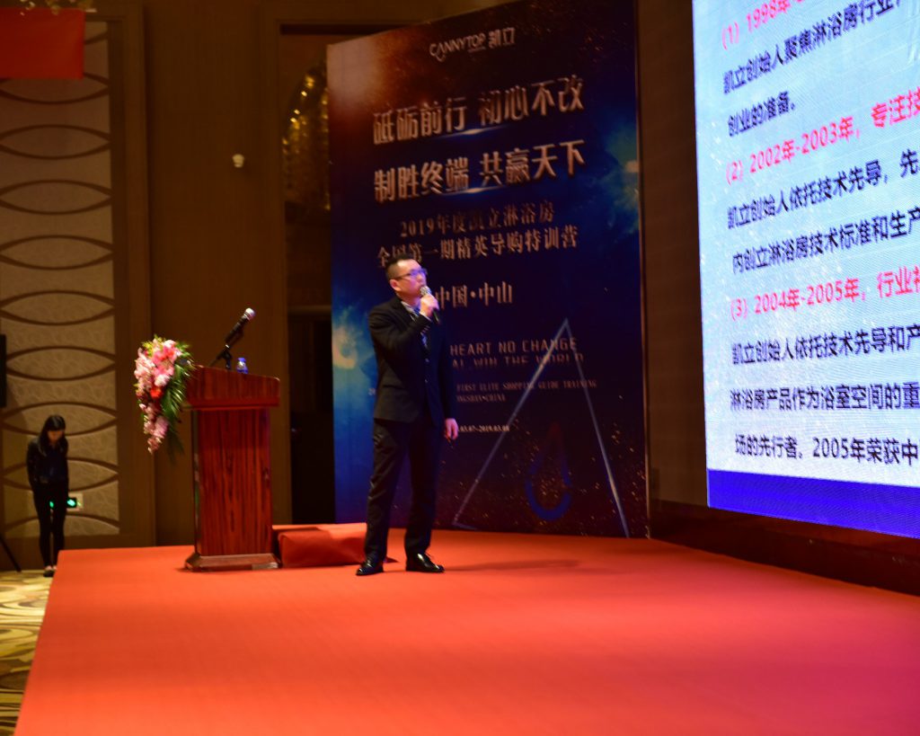 揭牌儀式后,中山凱立潔具有限公司董事長(zhǎng)助理、副總經(jīng)理、凱立淋浴房(中國)商學(xué)院常務(wù)副院長(zhǎng)肖建華先生致辭,肖總簡(jiǎn)要總結(jié)了凱立淋浴房2018年的工作要點(diǎn),明確指出了2019年凱立的調(diào)整方向;就本次培訓(xùn)活動(dòng),明確提出了學(xué)以致用,激勵(lì)所有學(xué)員和各地經(jīng)銷商團(tuán)隊(duì),不學(xué)習(xí)就會(huì)落后,因此,希望來參加培訓(xùn)的所有學(xué)員都能真正全心的投入到本次培訓(xùn)活動(dòng)中,學(xué)到真東西,回去后,創(chuàng)造出新的佳績(jī)。