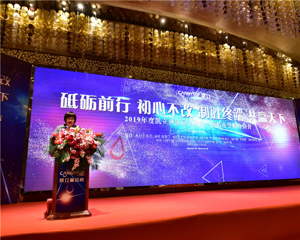 緊接著,中山凱立潔具有限公司董事長、凱立淋浴房(中國)商學院名譽總顧問、名譽院長徐少果女士致辭,她深情而洋溢的講話,激勵著凱立家人凝聚在一起,將凱立描繪的更為絢爛多彩。