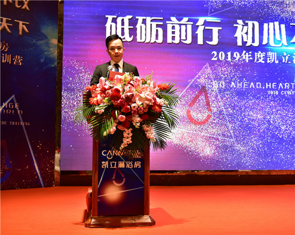 本次2019年度凱立淋浴房全國第一期精英導購特訓營開學典禮暨凱立淋浴房(中國)商學院揭牌儀式由凱立淋浴房國內渠道部主要負責人劉大衛先生主持。