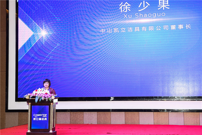 發布會首先由中山凱立潔具有限公司董事長徐少果女士致歡迎詞,她對多年來始終關心和支持凱立淋浴房的全國各地的合作伙伴以及媒體朋友表示感謝,并對蒞臨2019年上海國際展會表示歡迎,對中國建筑裝飾協會環藝分會、CDIU設計產業聯盟、中裝協設博會、中山淋浴房行業協會對凱立淋浴房的鼎力支持表示誠摯的謝意;徐董表示凱立將以更新的姿態立于行業之中,將更加專注于淋浴房領域,成為引領行業發展的專家和領軍品牌。