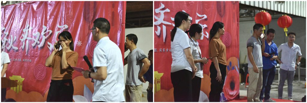 燒烤活動(dòng)過(guò)程中,除了員工慶生,還組織了一些有趣的互動(dòng)游戲,如猜燈謎、搶凳子、成語(yǔ)接龍,暖心的員工和父母電話連線等,大家都熱情高漲,各顯其才。