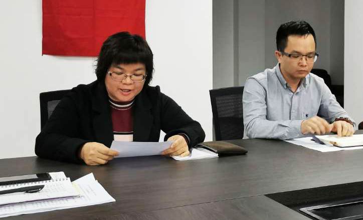 會議首先由人力資源部經理吳彩霞宣讀公司2020年1月1日起執行的政策文件,包括年度獎勵、績效考核、制度調整等方面的內容,進一步完善企業治理結構。