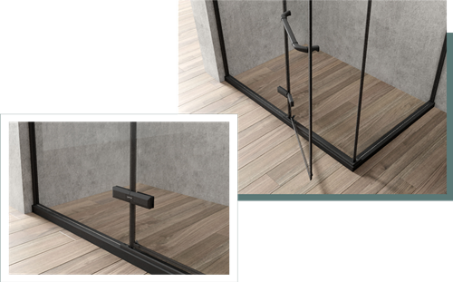 聯墻采用進口SUS304不銹鋼鈑金,先進、精密折板加工成型??蓛韧?、左右調節,修復墻面誤差,安裝便捷;拉桿玻璃夾、合頁和拉手均選用進口SUS304不銹鋼精鑄而成,承載力強,使用壽命長。
