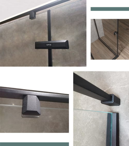 標配10mm汽車級完全鋼化玻璃+4H納米金剛防爆膜,固玻底部無底軌設計,更顯通透;門底使用回水、防水結構膠條,加配不銹鋼擋水底材,嚴密防水,穩固安全。