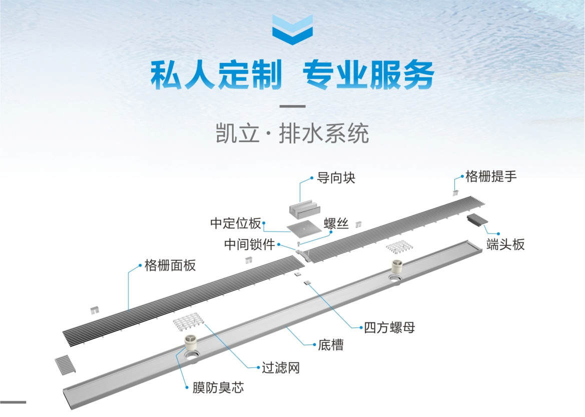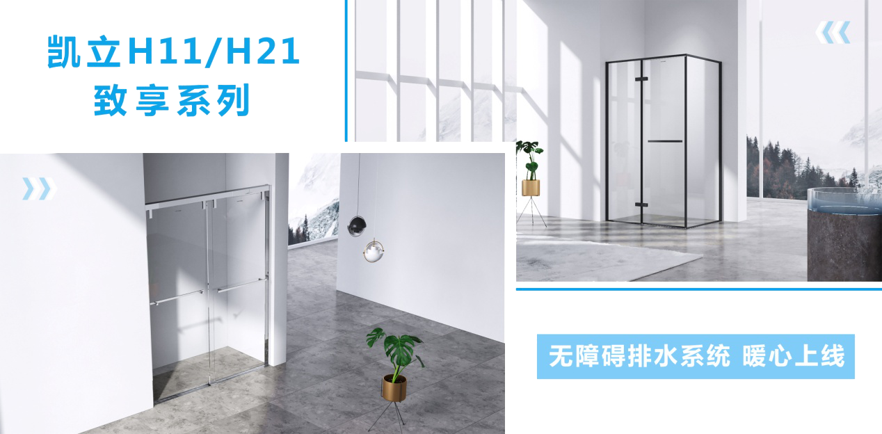 凱立新品H11/H21致享系列–無障礙排水系統,懂你生活的追求與向往,以簡潔現代的設計風格,精湛工藝和舒適尊享合而為一,融合人與自然多重思緒,滿足美觀、便捷、安全等多方面需求,為你打造健康與愜意淋浴生活。