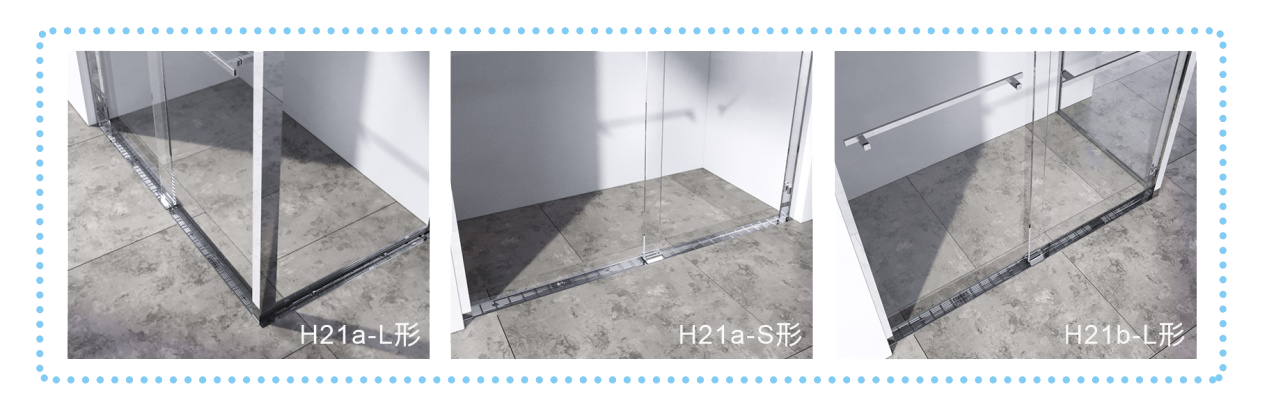 H11可搭配平開門等系列型號,則H21可搭配的是推拉門等系列型號。H11/H21無障礙排水系統設計簡約,與淋浴房相輔相成,散發著簡約而不失優雅的氣質。簡而有力的格柵提手,具有穩固牢靠的動感,同時又不失舒適的握感。H11/H21的整體外觀都將時尚凝聚成永恒,帶著一方從容與優雅,呈現著獨特的氣度與質感。
