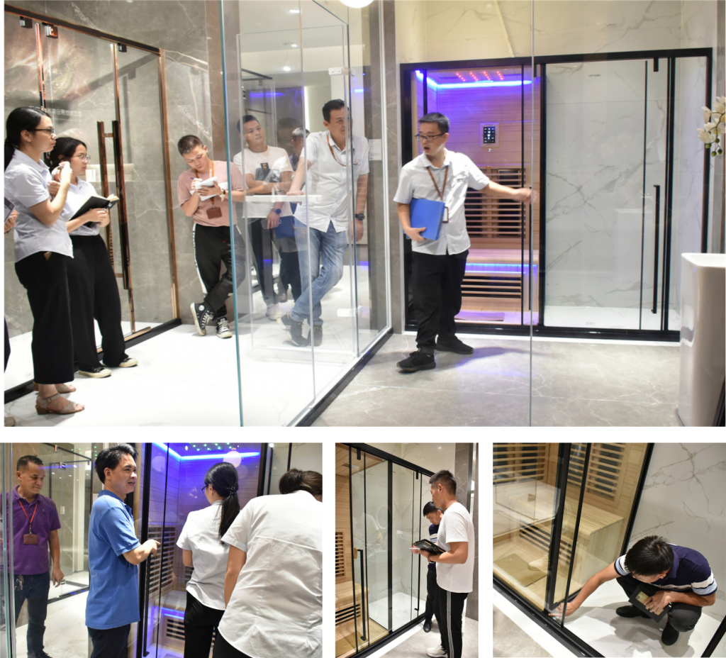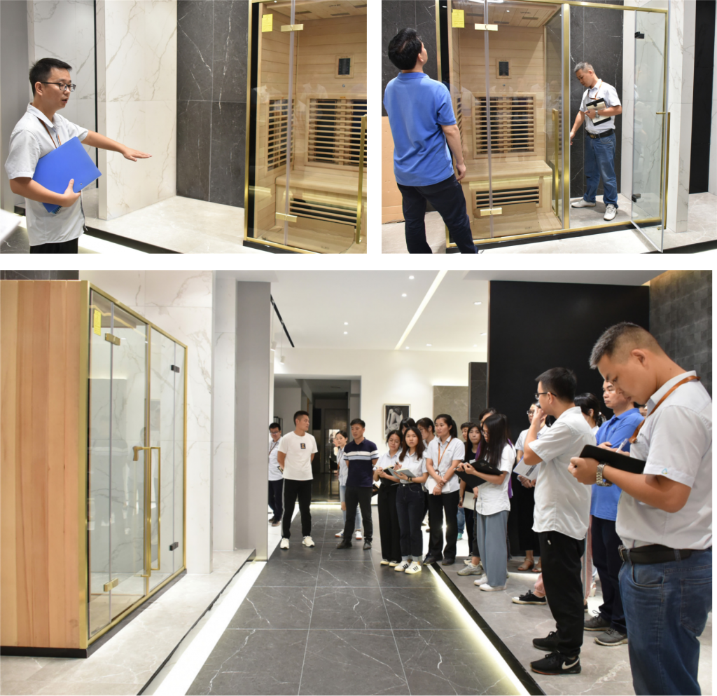 接著是對前幾天新推出的M11/M21智能遠紅外線光波房的介紹,對產品的功能、細節亮點、賣點和安裝產品事項上進行了一一的講解。幫助對外服務窗口的同事更好的了解產品的特點和結構,能更專業流暢的跟客戶介紹和溝通。