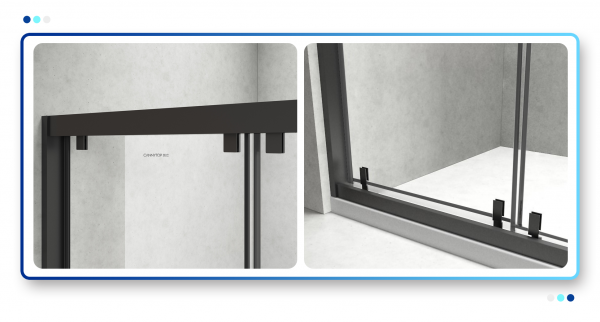 標配10mm汽車級完全鋼化玻璃+4H納米金剛安全膜,通透、安全;主活動門可上下調節,修正墻面誤差,兩門底部加配防水膠條,防水更密封,這不只是滿足于反復斟酌的設計,更是把「極致高雅生活的追求」體現在每一處細節上。